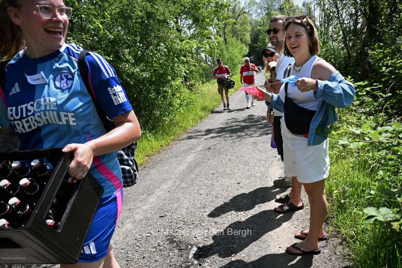 Supporters langs de route zorgen voor verkoeling.