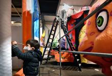 carnaval; karnaval; praalwagen; carnavalswagen; creativiteit; bouwplaats; carnavalsoptocht; kind; schilderen