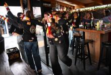 12-2-2026, Nederland, Ravenstein Een vriendinnengroep uit Ravenstein komt bij elkaar in een thuiskroeg. Ze zullen later in de middag vertrekken naar Den Bosch waar het carnaval vandaag al begint. Omdat de drankjes daar zo duur zijn bouwen ze eerst thuis hun feestje om in de stemming te komen. (niet voor Trouw, Parool, AD en NRC)
