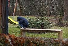 11-2-2026, Nederland, De Glind Van oudsher worden er in jeugddorp De Glind om diverse redenen uithuisgeplaatste kinderen opgevangen in een gezinshuis. Een kind in een speeltuin. (niet voor Trouw, Parool, AD en NRC)