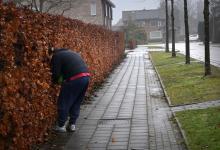 9-2-2026, Nederland, Nijmegen Een vrouw raapt zwerfafval op industrieterrein Oostkanaalhaven omwille van een betere leefomgeving van haar kinderen. Bramenstruiken woekeren en verstikken struiken en bomen. Stikstof is hiervan de oorzaak. (niet voor Trouw, Parool, AD en NRC)
