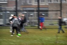 11-2-2026, Nederland, De Glind Van oudsher worden er in jeugddorp De Glind om diverse redenen uithuisgeplaatste kinderen opgevangen in een gezinshuis. Voetballende kinderen op een speelveldje. (niet voor Trouw, Parool, AD en NRC)