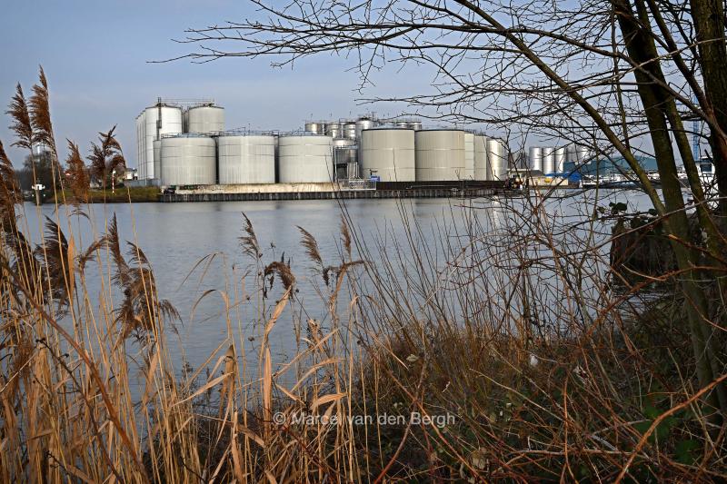 9-2-2026, Nederland, Nijmegen industrieterrein Oostkanaalhaven gezien vanaf een natuurlijke oever (niet voor Trouw, Parool, AD en NRC)