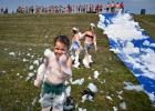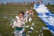 zeephelling; vakantie; zomervakantie; kind; kindervakantieweek; zomer; warmte; dijk; rivierdijk; Waaldijk; kinderen; schuim; zeep; plezier