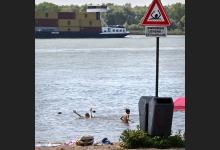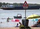 zwemmen; Merwede; rivier; grote rivier; gevaar; gevaarlijk; stroom; scheepvaart; zomer; zwemmer; rivierstrand; strand; strandje