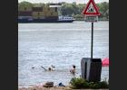 zwemmen; Merwede; rivier; grote rivier; gevaar; gevaarlijk; stroom; scheepvaart; zomer; zwemmer