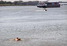 12-8-2025, Nederland, Gorinchem zwemmen in de Merwede foto Marcel van den Bergh (niet voor Trouw, Parool, AD en NRC)