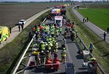21-3-2026, Duitsland; Gangelt rampenoefening waarbij 3 landen, Nederland, Duitsland en Belgie, samenwerken 700 hulpverleners zijn actief bij een fictieve kettingbotsing. Slachtoffers acteurs worden opgevangen. (niet voor Trouw, Parool, AD en NRC)