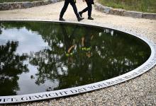 4-9-2025, Nederland, Apeldoorn Herdenkingsplek De Spiegelvijver op het terrein van de Politieacademie is een plek om politiemensen te herdenken die door suïcide zijn overleden. foto Marcel van den Bergh (niet voor Trouw, Parool, AD en NRC)