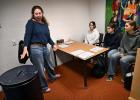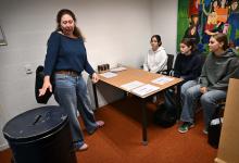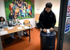 22-10-2025, Nederland, Panningen scholierenverkiezingen op het Bouwens van der Boije College Jongeren brengen hun stem uit op school waar een klein stemlokaaltje is ingericht. De leden van het stembureau krijgen uitleg van hun docente. foto Marcel van den Bergh (niet voor Trouw, Parool, AD en NRC)