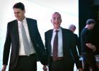 28-1-2026, Nederland, Eindhoven, Veldhoven ASML maakt jaarcijfers bekend. CEO Christophe Fouquet en financieel directeur Roger Dassen (met bril) goed gemutst tijdens de persconferentie. (niet voor Trouw, Parool, AD en NRC)