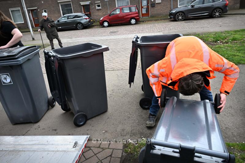 17-3-2026, Nederland, Oss Medewerkers van de gemeente zetten stemhokjes op bij diverse stemlocaties. Een losgelopen wiel van een stembus wordt onderweg gerepareerd. (niet voor Trouw, Parool, AD en NRC)
