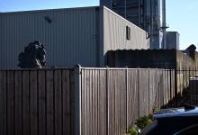 VRIJ 29-8-2024, Nederland, Tiel houten schutting op industrieterrein foto Marcel van den Bergh (niet voor Trouw, Parool, AD en NRC)