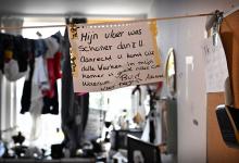 12-1-2026, Nederland, Dordrecht Opvang bij Het Leger des Heils voor clienten met complexe psychische problemen. Een client heeft een briefje opgehangen in zijn slaapkamer. foto Marcel van den Bergh (niet voor Trouw, Parool, AD en NRC)