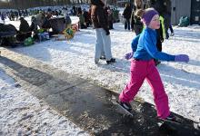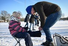 winter; ijsbaan; natuurijs; ijs; schaatsen; schaatsplezier; kou; koude; pauze; kind; kinderen; eten
