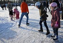 winter; ijsbaan; natuurijs; ijs; schaatsen; schaatsplezier; kou; koude; kind; kinderen; helm; veiligheid
