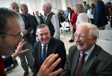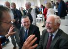 22-4-2026, Nederland, Maastricht Het Huis van de Democratie, het Gouvernementshuis, het provinciehuis van Limburg, bestaat 40 jaar en dat wordt gevierd in de feestzaal. Gouverneur Emile Roemer en oud gouverneur Sjeng Kremers worden aangesproken door een gast. (niet voor Trouw, Parool, AD en NRC)