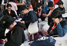 24-4-2026, Nederland, Amsterdam carrierebeurs in de Rai Een groep jongeren is drukker met hun mobieltje dan met de carrierebeurs. (niet voor Trouw, Parool, AD en NRC)