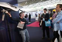 24-4-2026, Nederland, Amsterdam carrierebeurs in de Rai DeltaQuad probeert mensen te interesseren in hun bedrijf dat gespecialiseerd is in het ontwerpen en produceren van geavanceerde Long-Range drones. De drones worden oa gebruikt door defensie. (niet voor Trouw, Parool, AD en NRC)