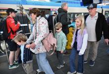 23-4-2026, Nederland, Arnhem Een opa en oma uit Didam gaan een dagje uit met hun kleinkinderen met de trein naar Arnhem. (niet voor Trouw, Parool, AD en NRC)