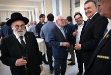 22-4-2026, Nederland, Maastricht Het Huis van de Democratie, het Gouvernementshuis, het provinciehuis van Limburg, bestaat 40 jaar en dat wordt gevierd in de feestzaal. Gouverneur Emile Roemer en opperrabbijn Binyomin Jacobs (panellid) in ontspannen sfeer na het officiele gedeelte. (niet voor Trouw, Parool, AD en NRC)