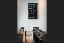 18-4-2026, Nederland, Kesteren Een nieuwe kerk van de Gereformeerde Gemeente is klaar. De megakerk biedt plaats voor 1750 mensen. Een digitaal bord. . (niet voor Trouw, Parool, AD en NRC)