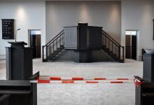 18-4-2026, Nederland, Kesteren Een nieuwe kerk van de Gereformeerde Gemeente is klaar. De megakerk biedt plaats voor 1750 mensen. Bijbels liggen netjes in het Consistorie. (niet voor Trouw, Parool, AD en NRC)