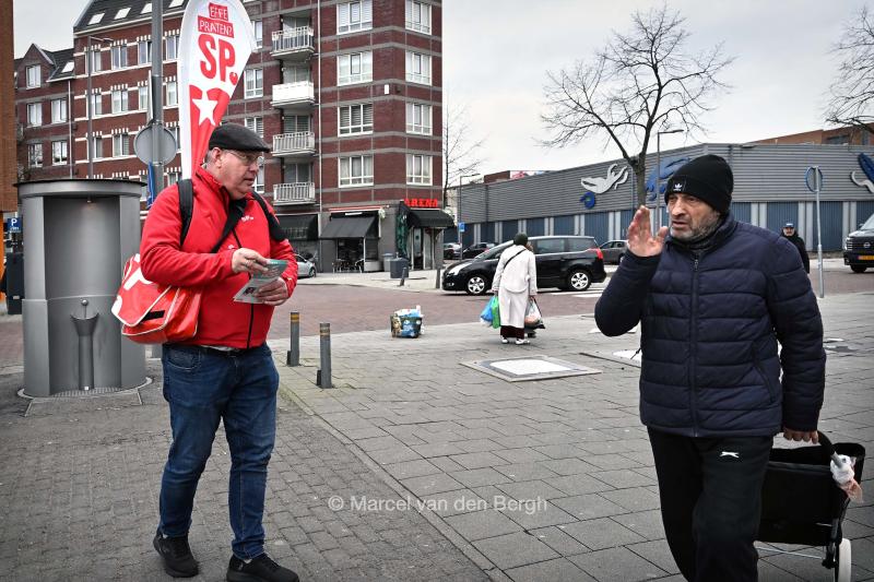 De SP probeert bij de Afrikaander Markt kiezers te interesseren voor de gemeenteraadsverkiezingen. De interesse blijkt niet al te groot.