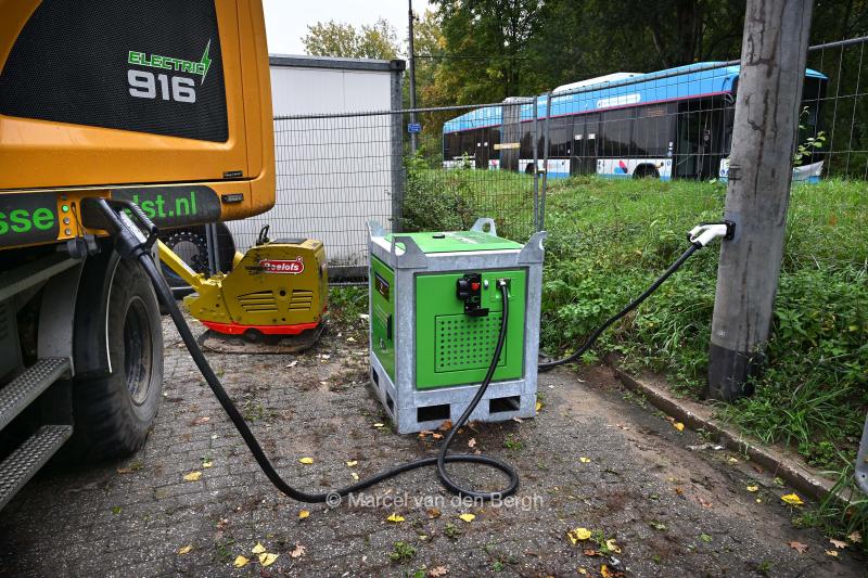 Trolley stroomleiding biedt oplossing als extra verlengsnoer omdat het stroomnet uit zijn voegen barst. Bouwmaterieel kan zo gemakkelijk aan stroom komen via een laadplek bij de trolleyleiding. Een graafmachine maakt er gebruik van.