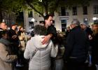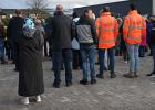 20-11-2025, Nederland, Dalfsen opening nieuw AZC Omwonenden en genodigden luisteren naar de toespraken. Een asielzoekster luistert mee. foto Marcel van den Bergh (niet voor Trouw, Parool, AD en NRC)