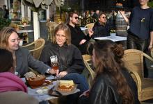 21-11-2025, Nederland, Den Bosch de Winterfair met kerstballen boven de horeca foto Marcel van den Bergh (niet voor Trouw, Parool, AD en NRC)