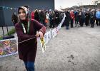 20-11-2025, Nederland, Dalfsen opening nieuw AZC Een lint met kindertekeningen dat moet worden door geknipt wordt vastgehouden. foto Marcel van den Bergh (niet voor Trouw, Parool, AD en NRC)