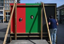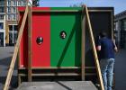VRIJ 17-4-2026, Nederland, Nijmegen NEC Nijmegen maakt zich op voor de bekerfinale van zondag tegen AZ. In het centrum staat een bord met een elftalfoto. Je kunt er met je hoofd deel uit maken van het team en er een foto van maken; tenminste als je het bord vanaf de goede kant gebruikt en als je dan de goede kant uit kijkt. (niet voor Trouw, Parool, AD en NRC)