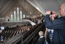 18-4-2026, Nederland, Kesteren Een nieuwe kerk van de Gereformeerde Gemeente is klaar. De megakerk biedt plaats voor 1750 mensen. Nieuwsgierigen kunnen een kijkje nemen tijdens een opendag maar mogen niet overal komen. (niet voor Trouw, Parool, AD en NRC)
