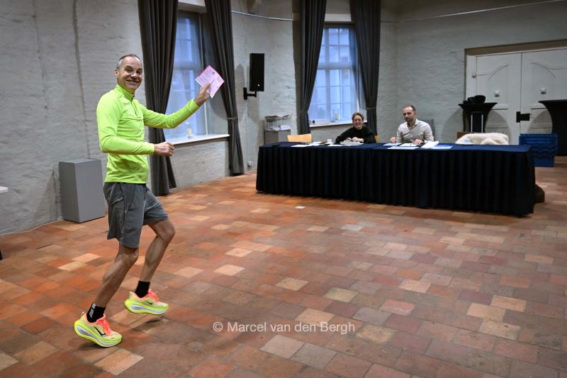 29-10-2025, Nederland, Zaltbommel stemmen voor 2e kamerverkiezingen Een vrolijke hardloper gaat zijn stem uitbrengen in de Gasthuiskapel. foto Marcel van den Bergh (niet voor Trouw, Parool, AD en NRC)