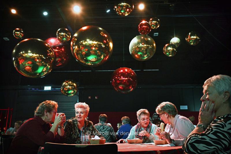21-11-2025, Nederland, Den Bosch de Winterfair met kerstballen boven de horeca foto Marcel van den Bergh (niet voor Trouw, Parool, AD en NRC)