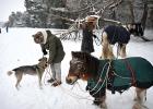 winter; sneeuw; sneeuwlandschap; sneeuwpret; recreeren; paard; pony; bos; wintersporters