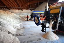 26-1-2026, Nederland, Breda Het uitrijpunt van strooizout van Rijkswaterstaat. Zout wordt geladen in een strooiwagen. foto Marcel van den Bergh (niet voor Trouw, Parool, AD en NRC)