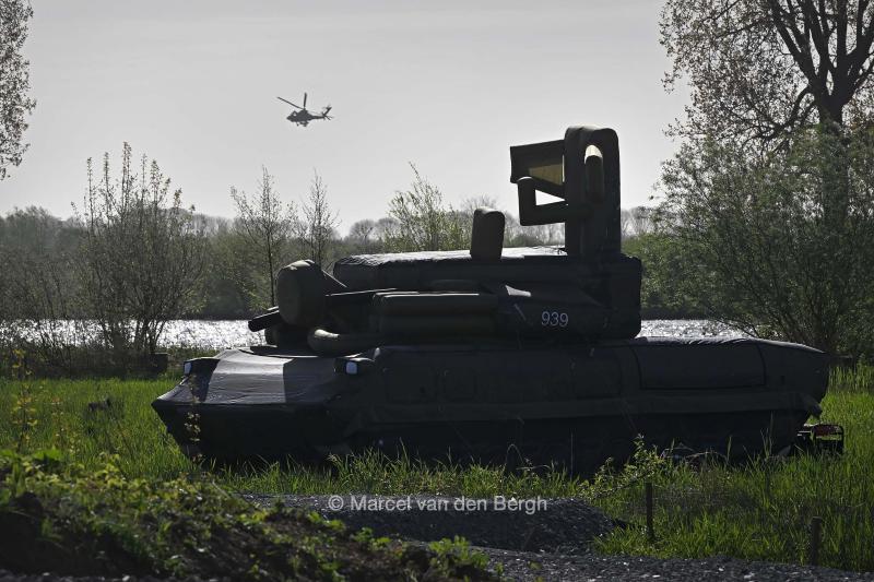 VRIJ 16-4-2026, Nederland, Appeltern Defensie oefent in het rivierengebied. Een opblaastank moet de oefening een realistisch tintje geven. (niet voor Trouw, Parool, AD en NRC)