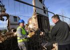 10-8-2021, Nederland, Deventer Boer Kloosterboer draagt zijn bedrijf over tijdens zijn vakantie aan Niks (met bril). Niks krijgt uitleg bij de melkrobot. foto Marcel van den Bergh