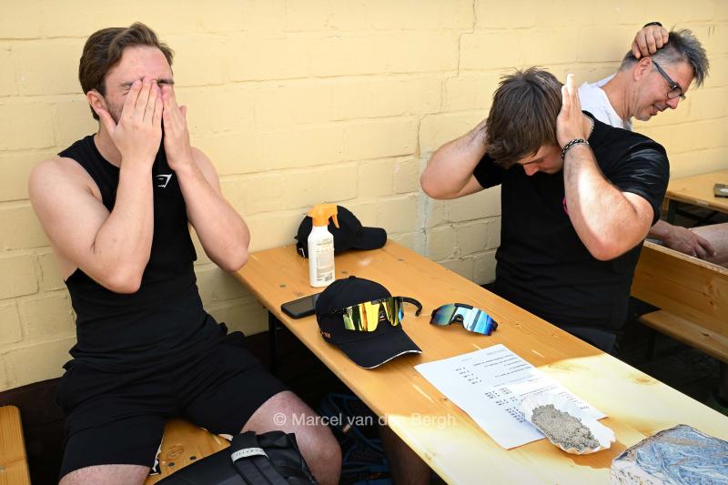 Voor aanvang smeren deelnemers zich goed in tegen de zon.