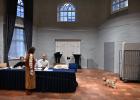 28-10-2025, Nederland, Druten Medewerkers van de gemeente bouwen stembureau's op. Bij stemburo Mamre wordt een beschermde laag in vorm van een pad op de vloer gelegd om deze te beschermen. foto Marcel van den Bergh (niet voor Trouw, Parool, AD en NRC)