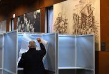 29-10-2025, Nederland, Amersfoort stemmen voor 2e kamerverkiezingen bij monument Kamp Amersfoort foto Marcel van den Bergh (niet voor Trouw, Parool, AD en NRC)