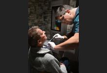 28-10-2025, Nederland, Etten-leur Wijkzorg aan het werk in de wijk. Een oudere wordt geholpen met het druppelen van zijn ogen. foto Marcel van den Bergh (niet voor Trouw, Parool, AD en NRC)