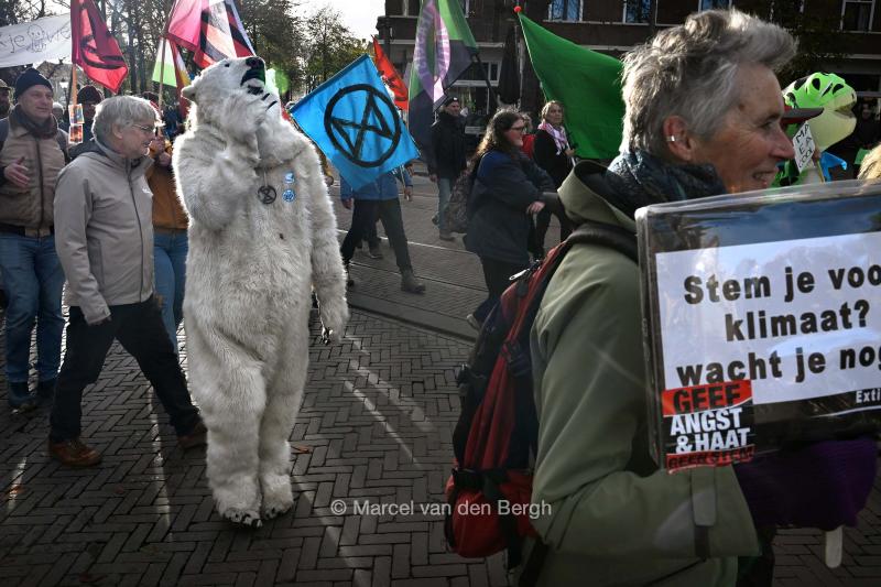 26-10-2025, Nederland, Den Haag klimaatmars Leden van Extinction Rebellion lopen mee. foto Marcel van den Bergh (niet voor Trouw, Parool, AD en NRC)