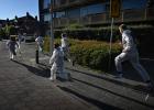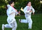 28-5-2025, Nederland, Gorinchem The Hunt Jongeren van 11 tot en met 17 jaar proberen in een uitdagend spel uit handen te blijven van de politie. Ze moeten in de wijk zoveel mogelijk stempels verzamelen. Kinderen krijgen bij aanvang een wit pak en een rugnummer. foto Marcel van den Bergh (niet voor Trouw, Parool, AD en NRC)
