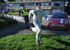 28-5-2025, Nederland, Gorinchem The Hunt Jongeren van 11 tot en met 17 jaar proberen in een uitdagend spel uit handen te blijven van de politie. Ze moeten in de wijk zoveel mogelijk stempels verzamelen. Een jongen probeert uit handen van de politie te blijven. foto Marcel van den Bergh (niet voor Trouw, Parool, AD en NRC)