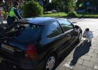 28-5-2025, Nederland, Gorinchem The Hunt Jongeren van 11 tot en met 17 jaar proberen in een uitdagend spel uit handen te blijven van de politie. Ze moeten in de wijk zoveel mogelijk stempels verzamelen. Een meisje verstopt zich voor een passerende motoragent. foto Marcel van den Bergh (niet voor Trouw, Parool, AD en NRC)