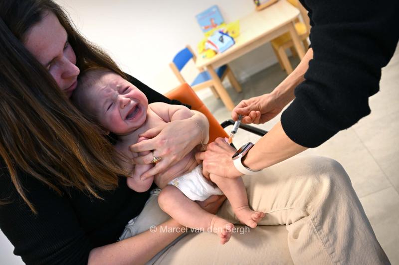 Moeder bezoekt met haar 3 maanden oude baby (jongetje) het consultatiebureau voor diverse vaccinaties.