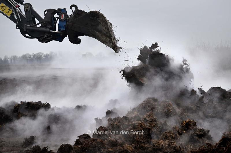 VRIJ 29-12-2025, Nederland, Druten Een boer verspreidt mest uit over de koude ondergrond. foto Marcel van den Bergh (niet voor Trouw, Parool, AD en NRC)